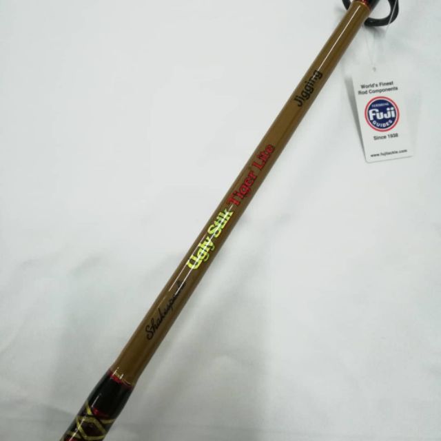 Description shakespeare ugly stik tiger lite jig spinning rod shakespeare ugly stik tiger features exclusive howald process triple built blanks feature precise actions for jig and bottom fishing with added graphite for better sensitivity and increased pulling power. Tiger rods are at home catching tuna in the pacific as well as landing monster catfish down south. The shakespeare ugly stik tiger lite jigging rod includes eva grips with contoured fore grips for extra comfort.