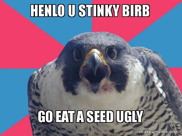 A little about the app ugly bird meme creator memes with this app can be highly customized by adding images quotes polls time and date replies and much more. Thousands of new high quality pictures added every day. Henlo refers to a series of images in which animals are looking at a computer and apparently getting cyberbullied by a person who starts their message with henlo animal the message that the animal is reading is a snowclone that changes.