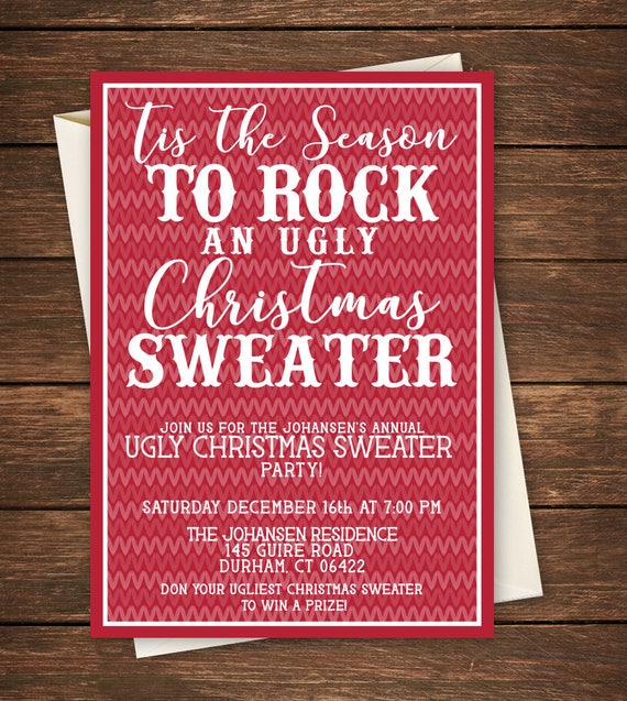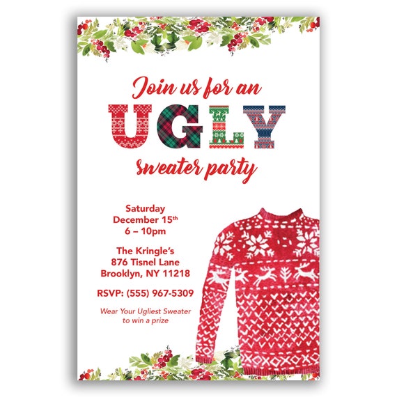Let us all be ugly together this christmas. Ugly sweater christmas party invitation template ugly sweater party invitation holiday party invite work holiday party invitation ugly printablemoment from shop printablemoment. Now lets dig into all of the different options and types of ugly sweater party invitations on this page.
