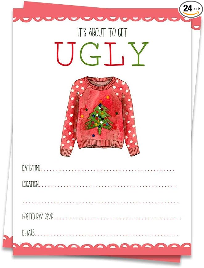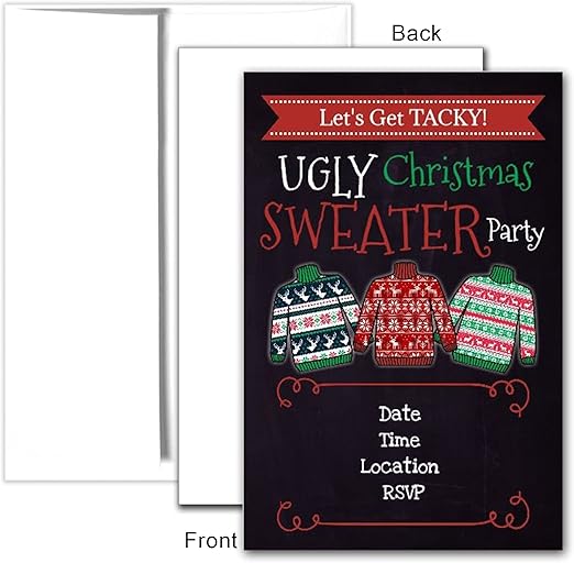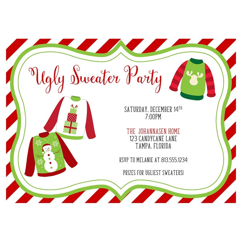 Amazon Com Ugly Christmas Sweater Party Invitations Personalized With Your Custom Text 20ct Kitchen Dining