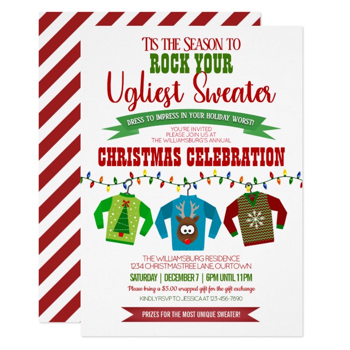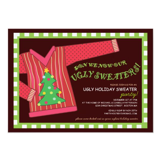 Its a holiday celebration. Ugly sweater christmas party invitations from zazzle. Put on your ugliest sweater and join us for this cant miss event.